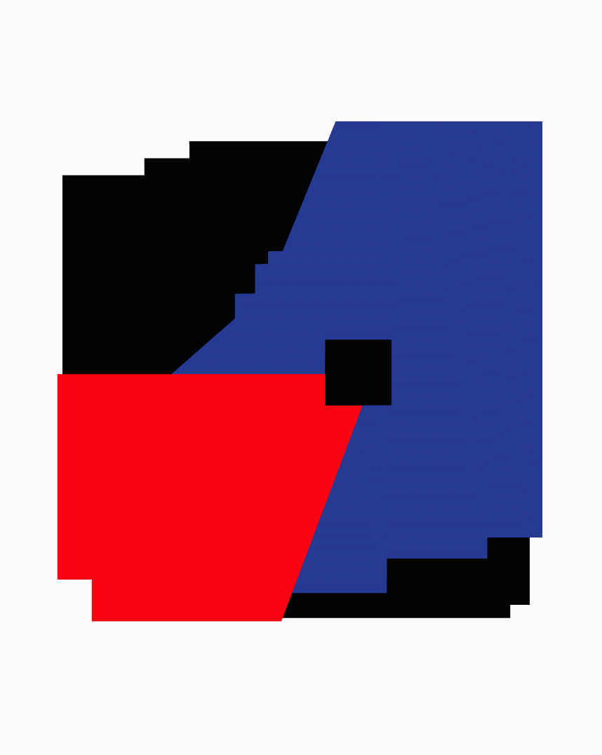 “Felipe Pantone creates a rational work that seeks communication and dynamic-active interaction with the viewer while playing and experimenting with the graphic expressions of digital language to build images from a mosaic of pixels, geometric patterns, angled figures, dynamic compositions, etc.